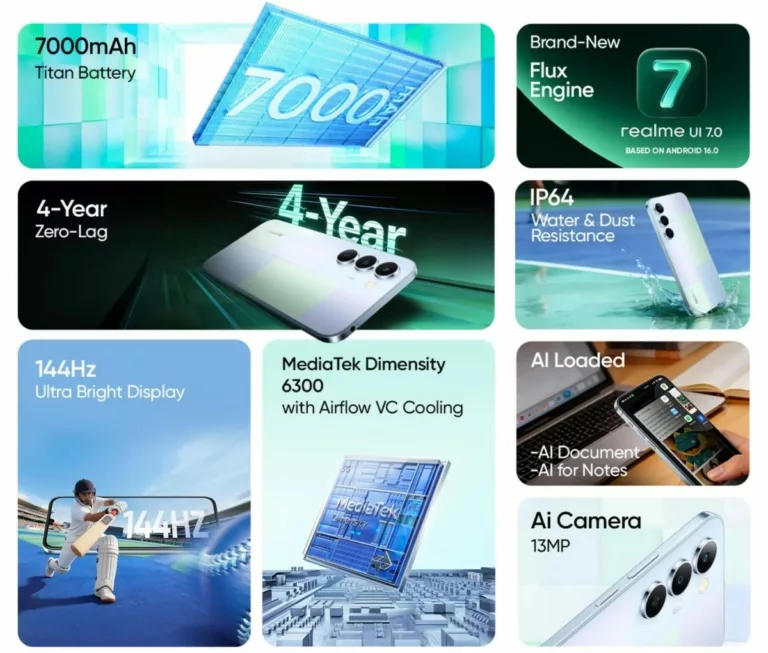 The smartphone will ship with the Android 16-based Realme UI 7.0 operating system. Realme guarantees 2 years of OS updates and 3 years of security patches. To support performance, the device will offer up to 6 GB of RAM and 128 GB of internal storage. To prevent overheating during intensive tasks, this model also includes a dedicated vapor cooling chamber.